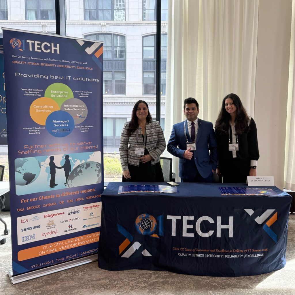 Representing Q1Tech at the event were Eesha, Shivam, & Rani, who explored new opportunities and strengthened relationships within the community.